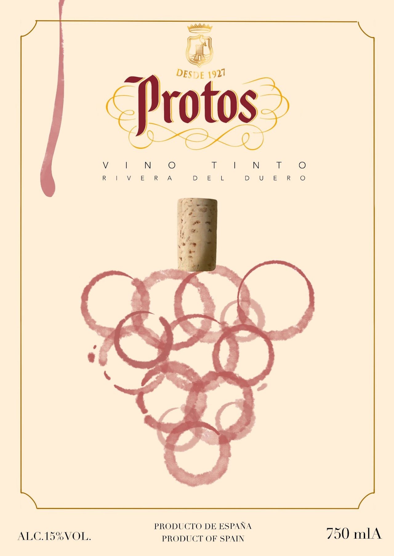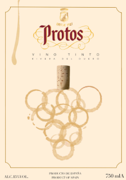 Rediseño de etiqueta para bodega Protos con equilibrio entre tradición y elegancia.