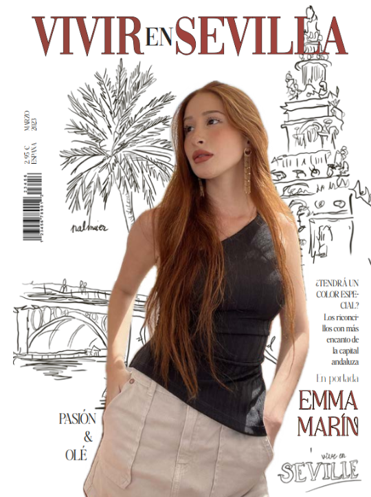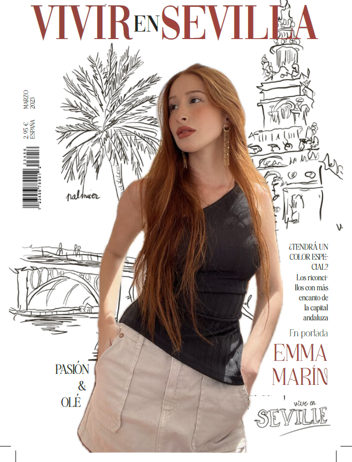 Portada visual de una revista ficticia. Emma Marín en portada.